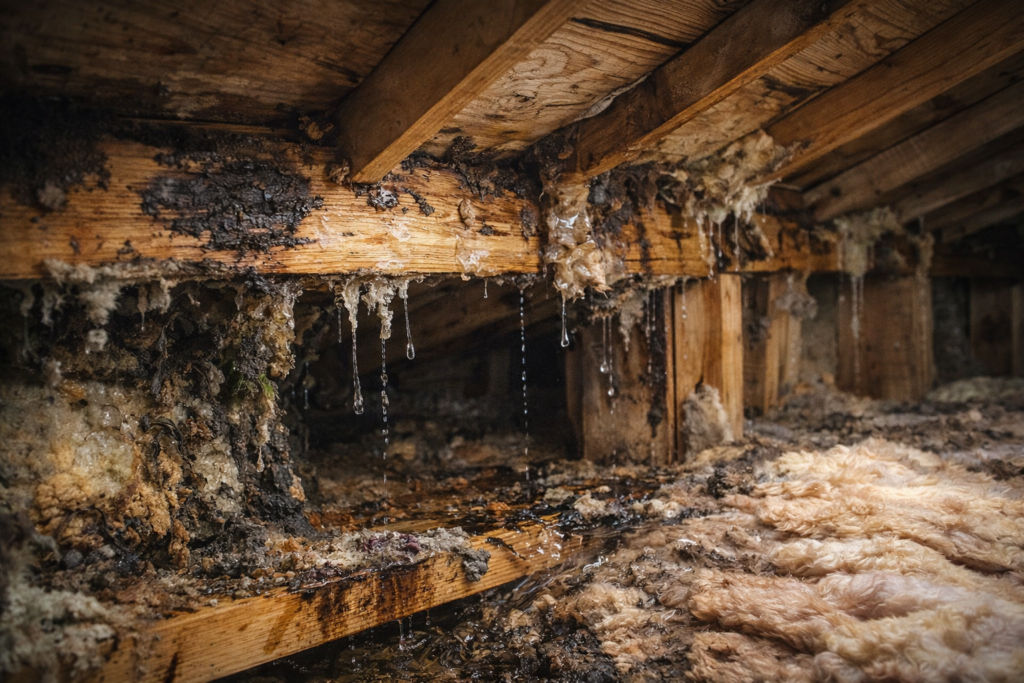 濡れた断熱材は性能が大幅に低下します。暖房効率の悪化や結露の発生につながります。