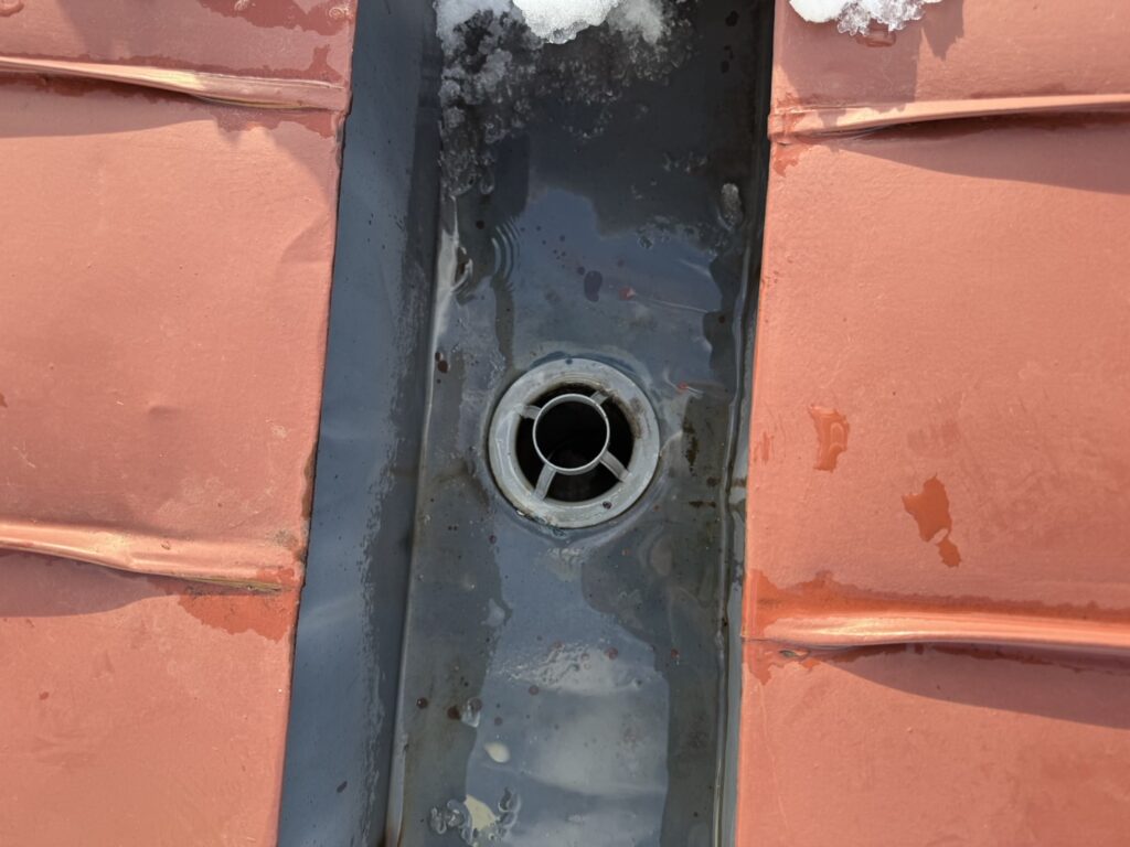特にスノーダクト(無落雪屋根)の住宅では、排水口や樋が凍結することで、この現象が起こりやすくなります。
