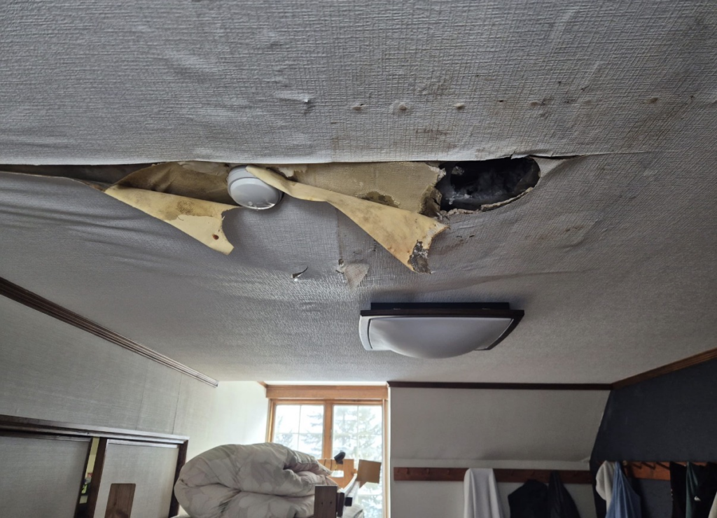 - 天井材が一部腐食