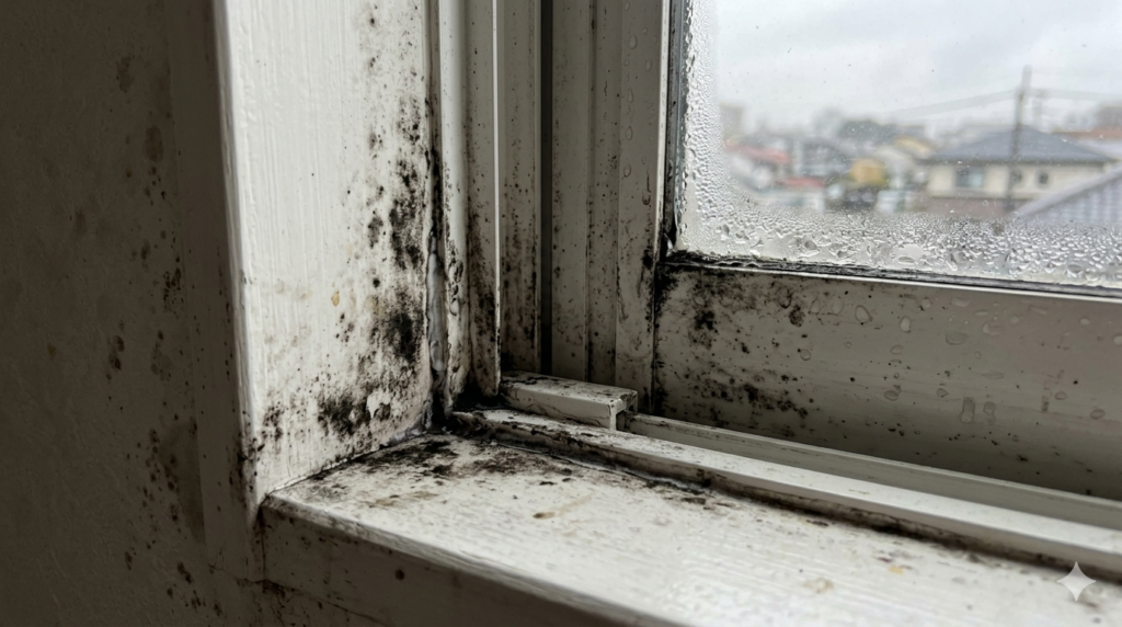 カビは見た目の問題にとどまりません。カビの胞子は空気中に漂い、日常的に吸い込み続けることで、アレルギー症状や気管支への影響を引き起こすリスクがあります。特に小さな子どもや、アレルギー体質の方がいる家庭では、室内のカビを放置することは健康面でのリスクに直結します。「窓枠の黒ずみくらい」と軽く見ていると、家族の健康に影響が出てから初めて深刻さに気づく、ということになりかねません。
