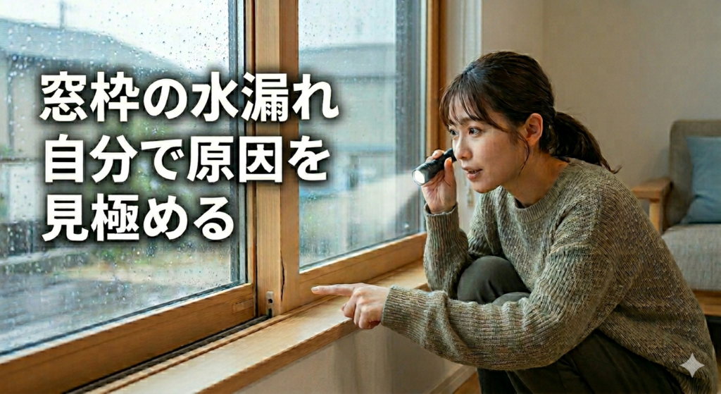 窓枠の水漏れには、大きく分けて3つの原因があります。そしてその原因は、特別な道具も専門知識も使わず、「濡れ方」と「タイミング」を確認するだけで、自分でおおよその見当をつけることができます。