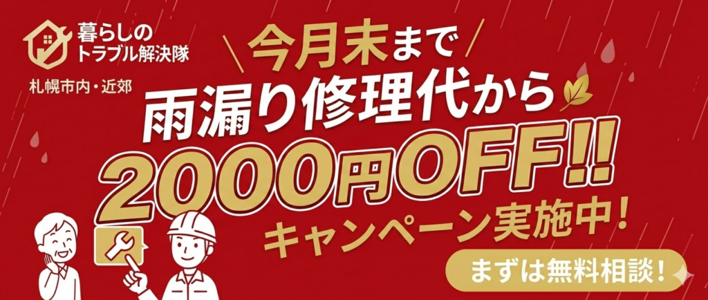 今月末まで雨漏り修理代から2000円OFF
